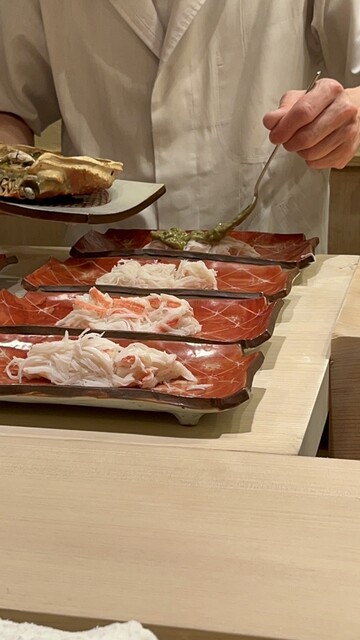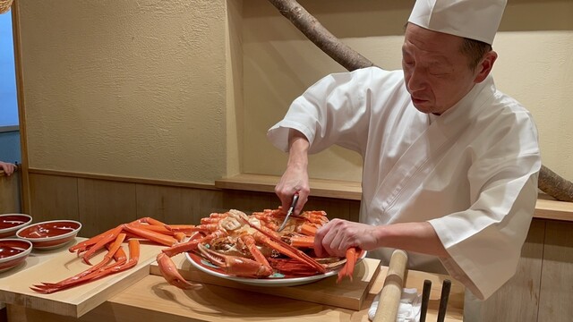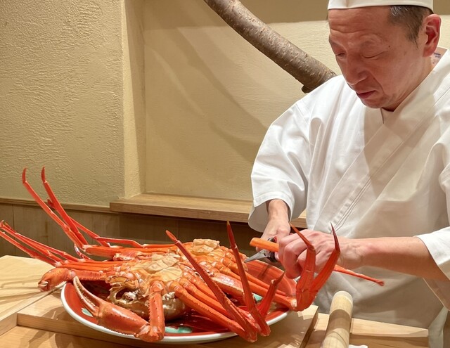 紅ズワイガニ、モクズガニ、加能ガニとメスの香箱ガニのお料理など、日本料理屋さんとはまた違っ...