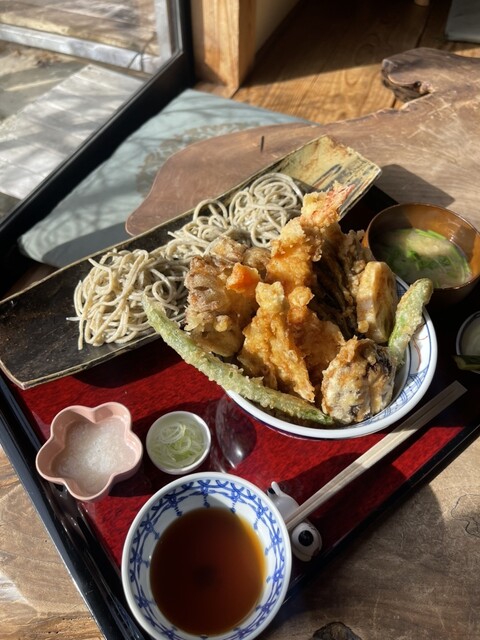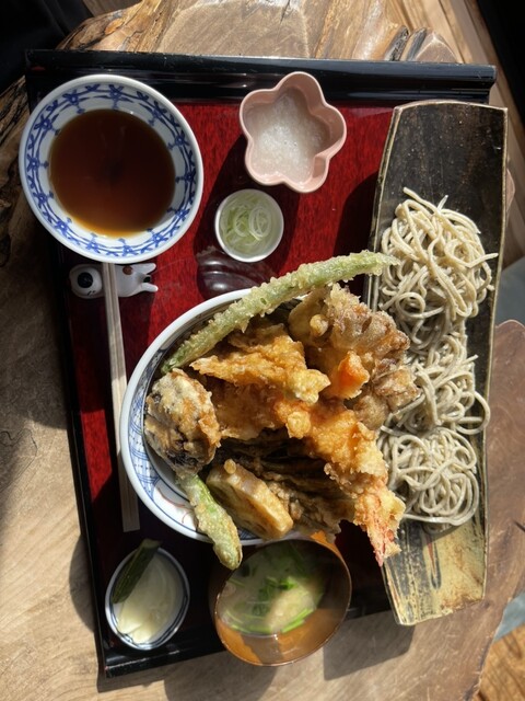 注文は天ぷらと蕎麦のセットとソフトクリーム。