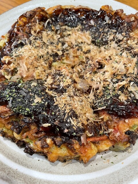 お好み焼きは小ぶりですが、両面がカリッと焼かれて好みの味!!