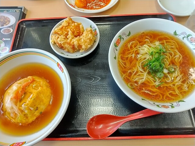 今日は、午後半休で嫁さんと期日前投票等の 用事を片付けてからの昼食に訪問。 定食にかけ醤油ラーメンのセットがっ!! しかもジャストサイズらしき天津飯と炒飯が!? 最... 詳細を見る