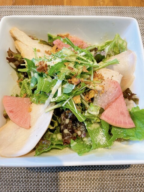 ○サラダは、サラダチキン、ラディッシュ、水菜、レタスかな?