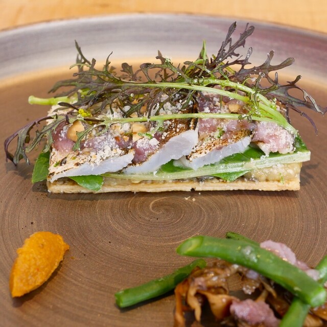 羽咋から車で10分。隣で菜園をやっていたり、スイーツの店も併設されていて中々に面白い。ランチは3種あって私は前菜2種と魚と肉メインが両方ついているCコースを注文。 メインの肉は能... 詳細を見る