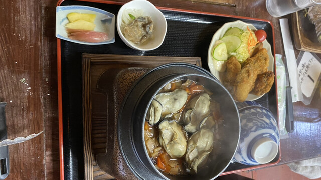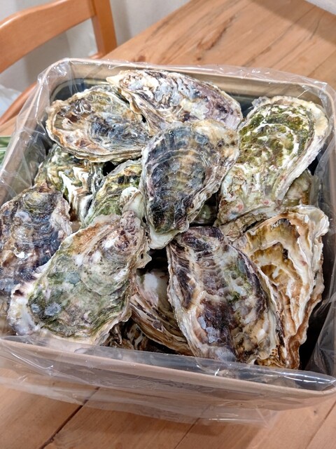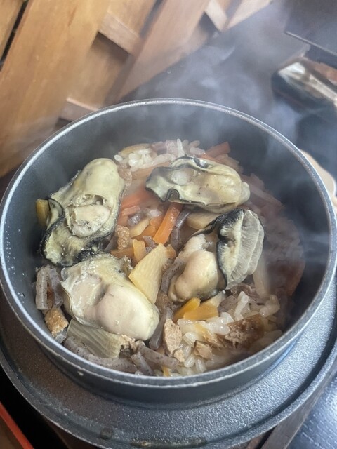 私たちは生ガキの大(中・大・特大がありました)と焼き牡蠣、牡蠣の釜めし、カキフライを頂きました。