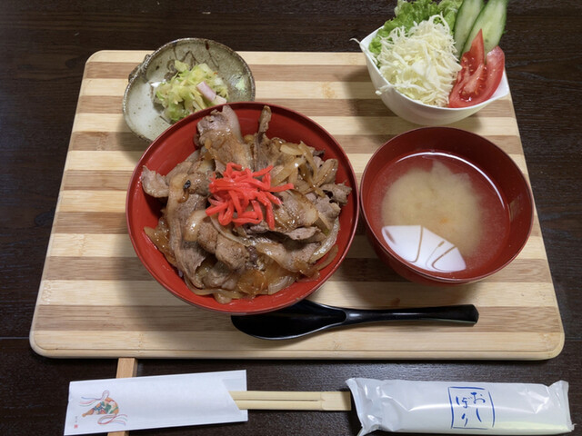 メニューは、猪丼、猪ハンバーグ定食、猪キ...