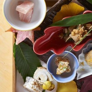 旬の地元食材で仕立てる華やかな和食×お鮨×日本ワインのマリアージュ。接待等の特別な日に