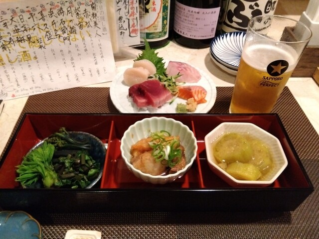 夕方4時を少し過ぎた頃。 一人で少し飲もうと思いお店を探していると、ちょうど4時から開いているお店があったので、中へ。 まだお客さんはいませんでしたが、予約はしていないことを告げると5時半までなら大丈夫ということで、入れてもらいました。 まずは、生ビールを注文。 お通しには、枝豆と白和え... 詳細を見る