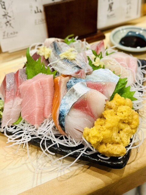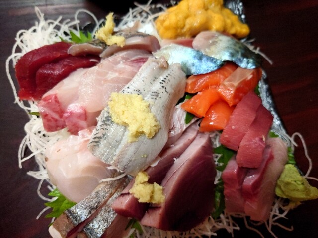 盛岡で本当に美味しい刺身の盛合せが食べたくなったならば『かかし屋』さん一択となるでしょう。『本鮪(ホンマグロ)』や『鰹(カツオ)』に『鮃(ヒラメ)』に『鯣烏賊(スルメイカ)』等であれば『浜味屋』さんでも勝るとも劣らぬ質の高いものを供してくれますが総合力では『かかし屋』さんに敵う店は自分が知る限り盛... 詳細を見る