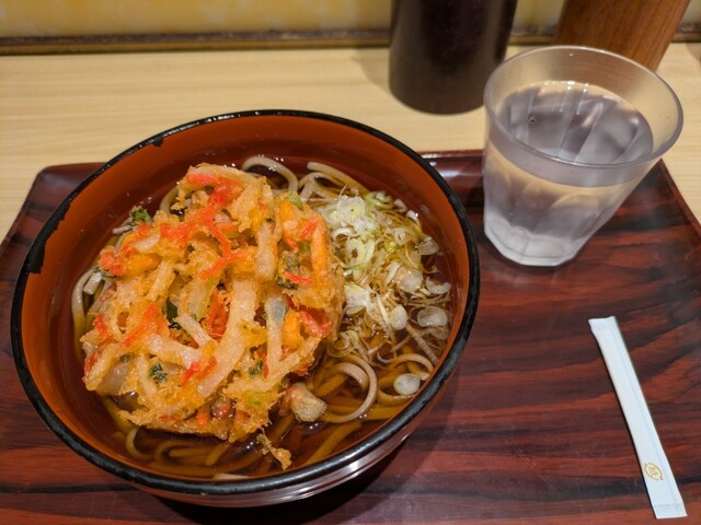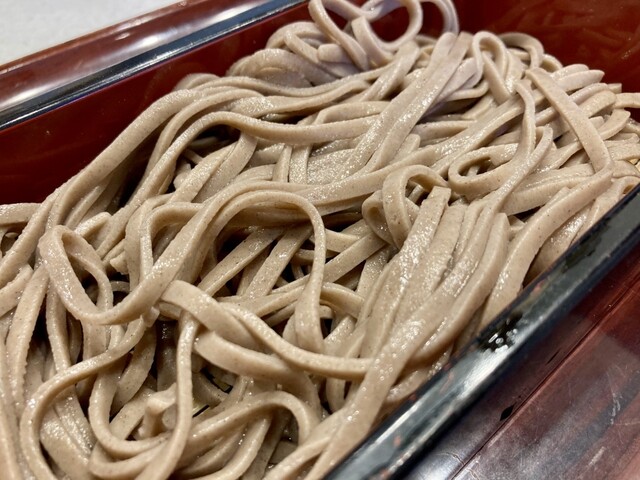 あたたかなたぬきそばですが、平打ちの中太麺はコシがあり、喉越しもよい。