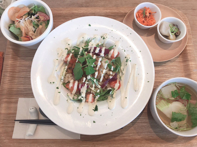 ・マクロビオティックの考えをにベースした、オーナー自家栽培の無農薬玄米惣兵衛米と地物のお野菜、豆、海藻からつくるお料理です。(ビーガン対応) |