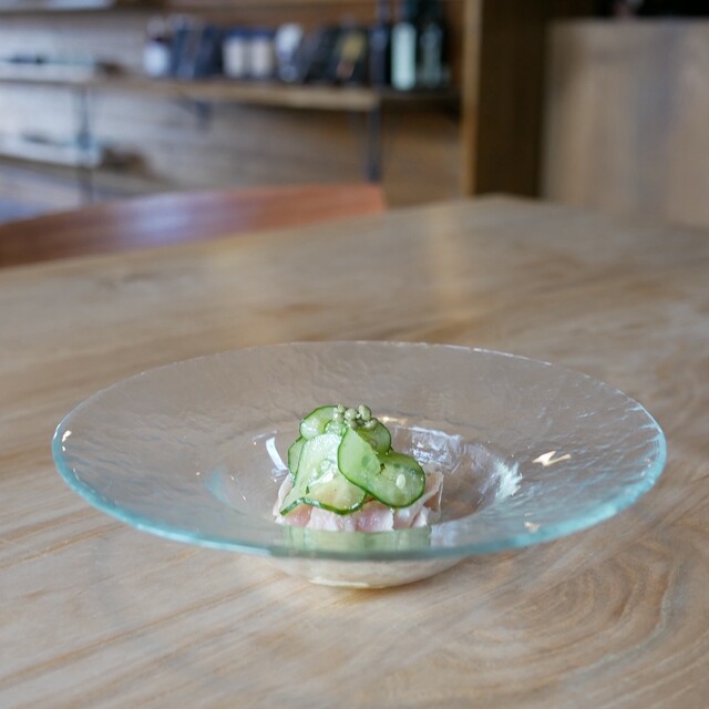 地元の無農薬のお野菜や、南部小麦と自然卵の自家製生パスタ、 三陸の魚介、花巻 白金豚など、デザート含む5皿と食後のお茶。 2時間ほど。 (どのコースも全体のボリュームは変わりません) アルコールペアリングは +4,400円 ノンアルコールペアリングは +3,100円