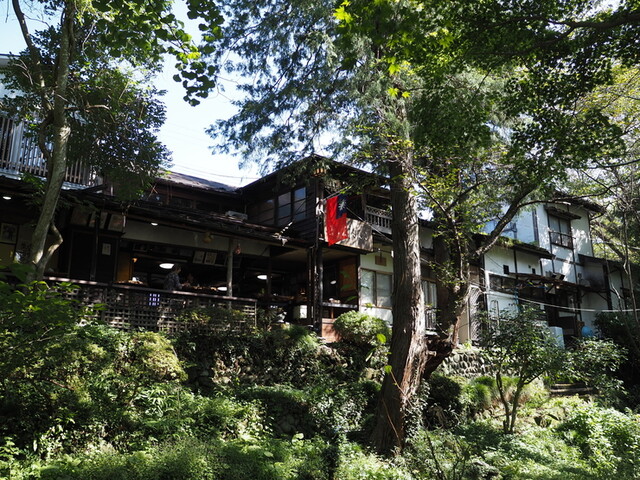 このお店の名物は、なんといっても渓流を渡るカゴで届けられるユニークな販売方法‼︎