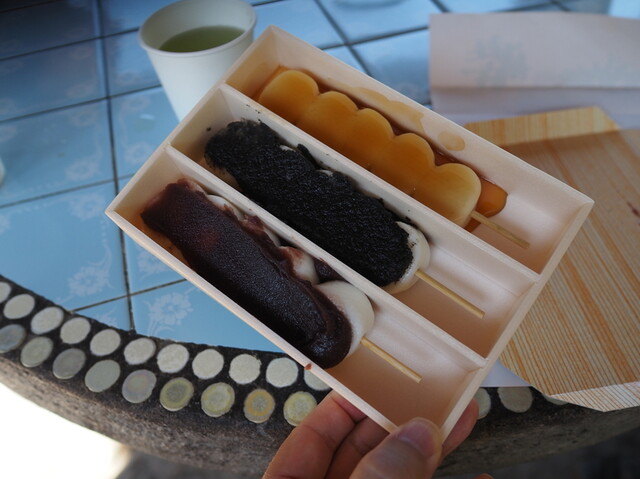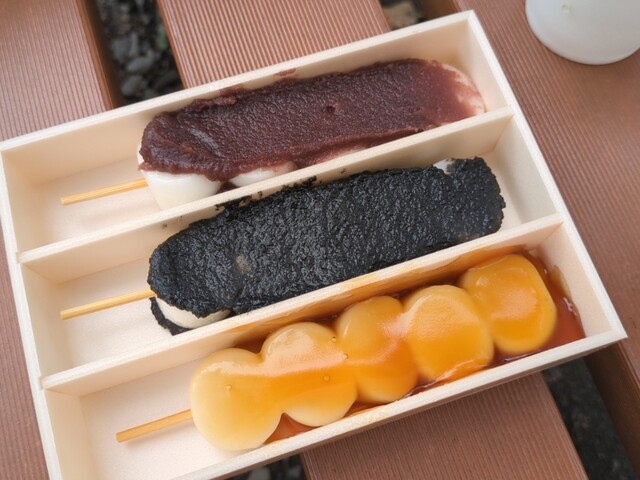 3本セットのお団子はとてももちもちで、味付けは濃すぎず、どの味も素材の良さが感じられてとても美味しかったです♪