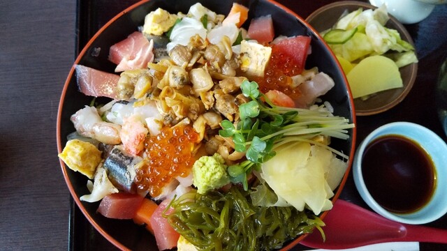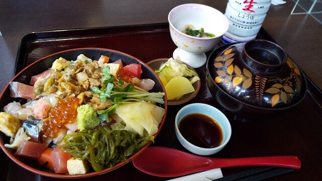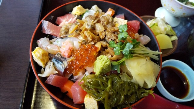 私は海鮮バラチラシ、ツレはハンバーグランチ。