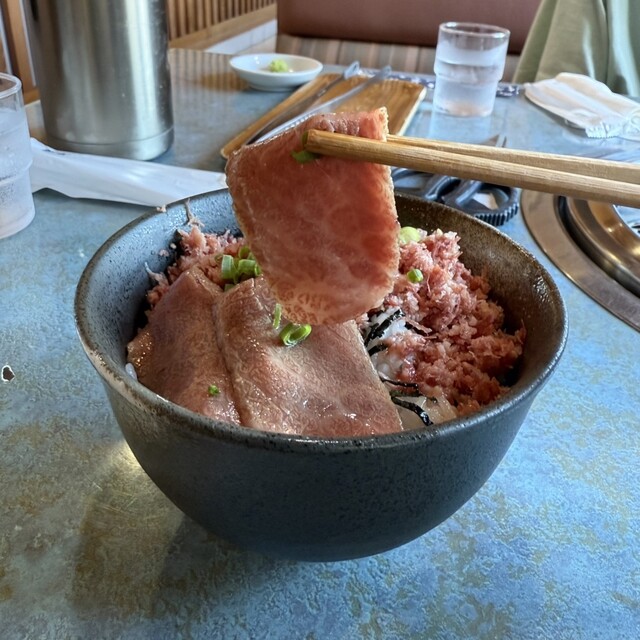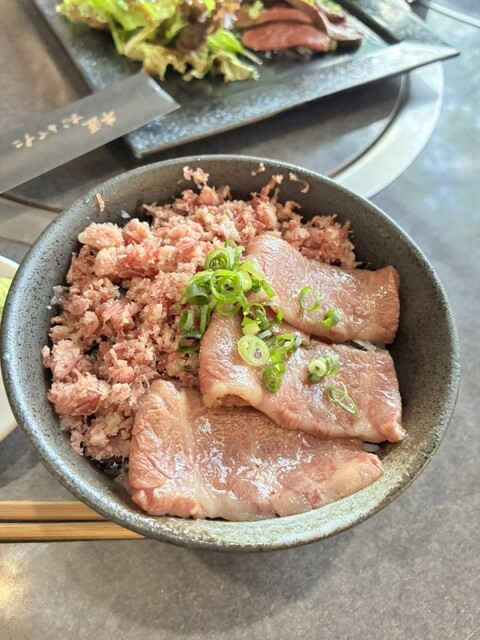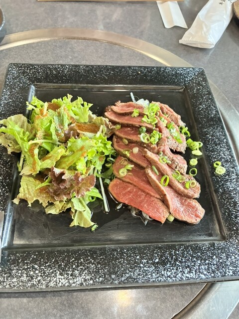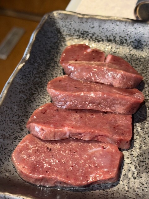 東京ならこんな値段じゃ食べられない、というレビューを見て確かにそうだなと思い奮発してシャトーブリアンを注文。テーブルにコンロが二つあり、シャトーブリアンなどステーキは陶板で、焼き肉は網で焼きます。