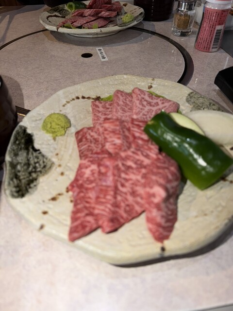 家族のとあるお祝いにて初訪問。 事前に電話でお座敷を予約。 掘り炬燵席なので実に快適でして、窓の外には夜桜がライトアップされ、素敵な雰囲気。 メニューは勿論、小形牧場牛や前沢牛のステーキや焼き肉、すき焼きにしゃぶしゃぶ、リーズナブルなホルモンや丼もありますが、贅沢を極めたいと思います。 ... 詳細を見る