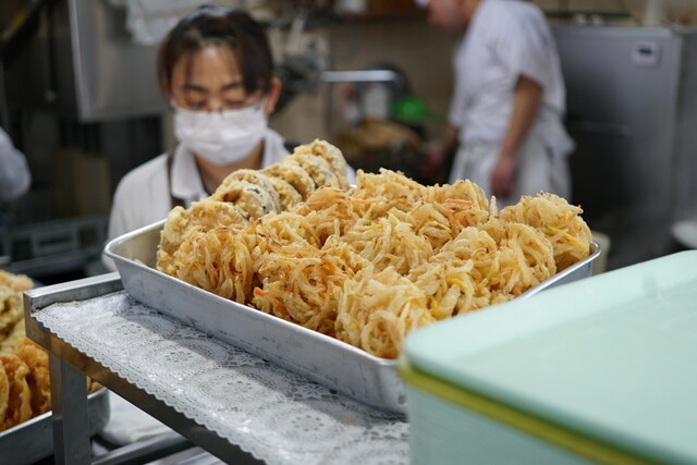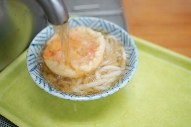 店に入ると奥のカウンターで注文し、トッピングを選んで会計。かけやぶっかけ系はセルフでポイで温めるが釜あげ系は番号札もらって呼ばれるのを待つ。私は釜玉(中、4...