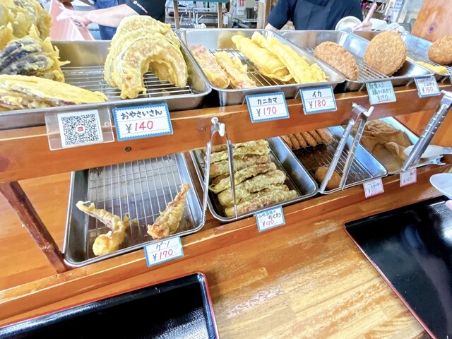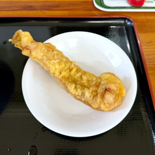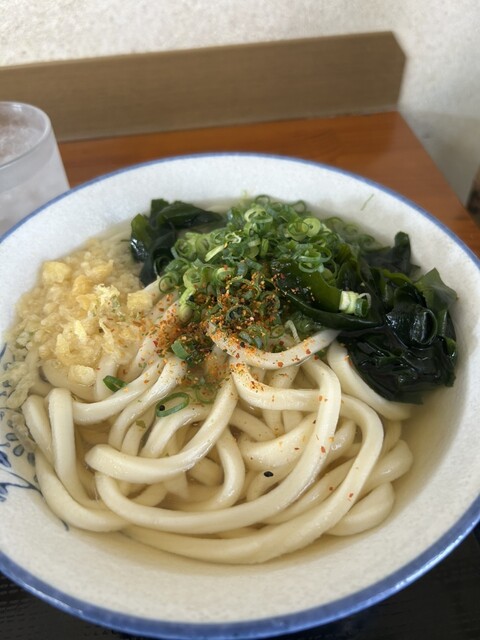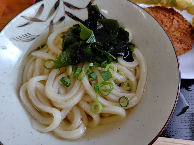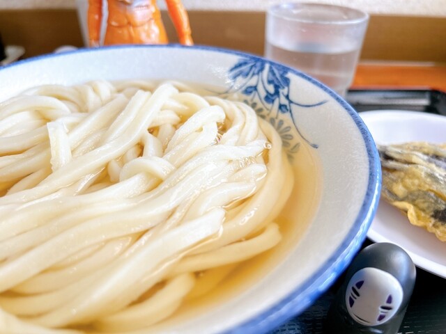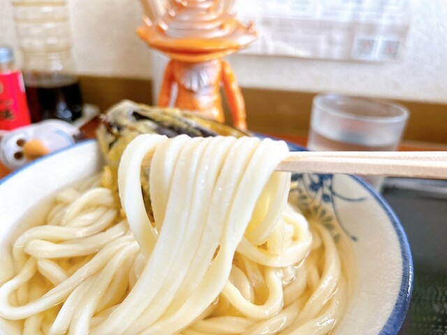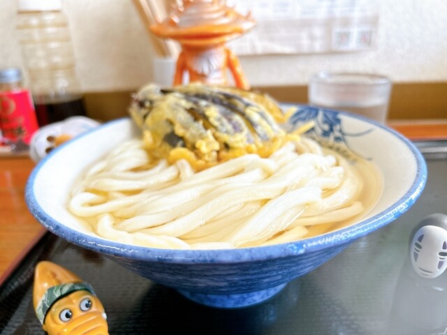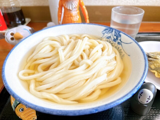 お店は完全セルフ式で、揚げ物を取り、麺の玉数を伝えると丼に入ったうどんが提供されます。私は1.5玉(400円)とかしわ天(180円)をチョイス。合計580円とリーズナブル。麺はお湯の張られた釜で自...