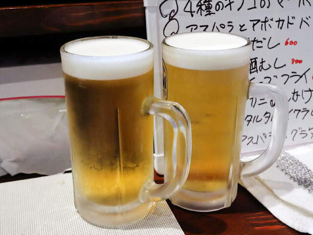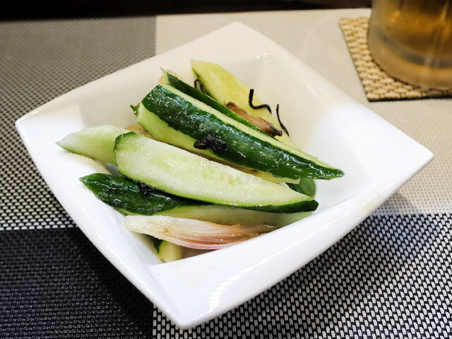 まずは生ビールで乾杯をしました。その後の酒類の流れは、相方が生ビール⇒ハイボールで、私は生ビール⇒レモンサワーを呑みました。料理は、ザーサイポテトサラ...