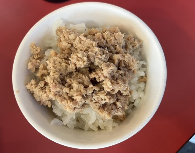 さて、今回は中盛ラーメンとそぼろご飯にしました。