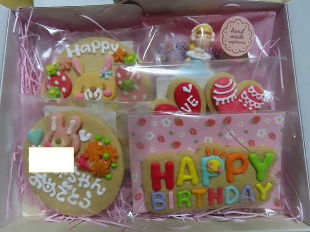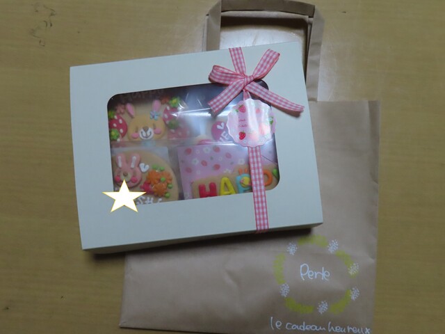 私の誕生日プレゼントに頂きました! どうもありがとうございます☆ 紙袋から出してみると、窓開き箱からもうカワイイのが見えてるーー カラフルなイラストのアイシングクッキーの... 詳細を見る