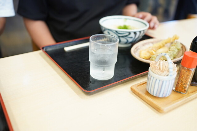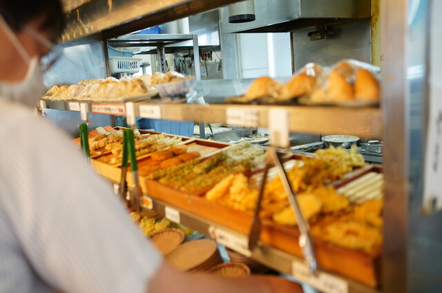 うどんを受け取り、進んで天ぷらを取ります。