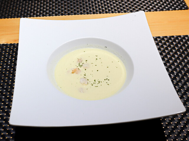海老ととうもろこしの冷製スープ