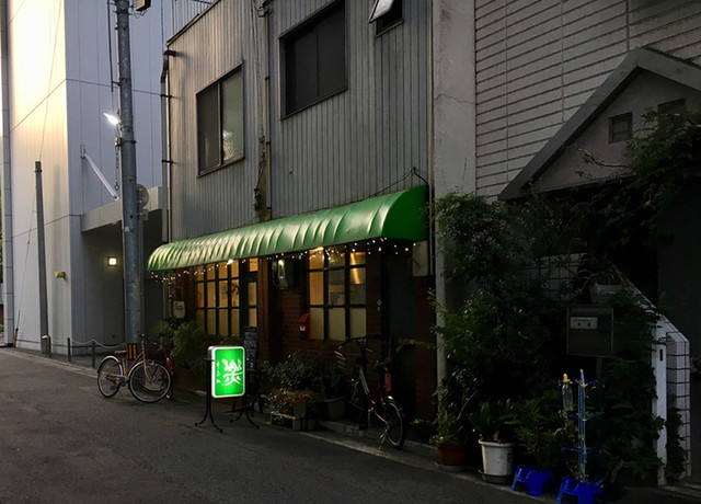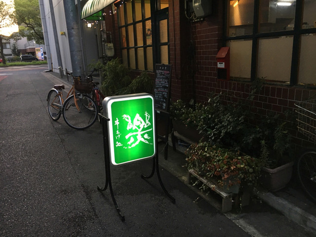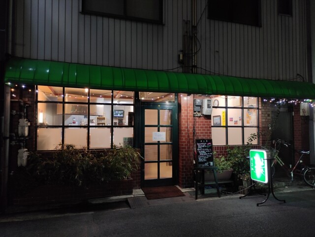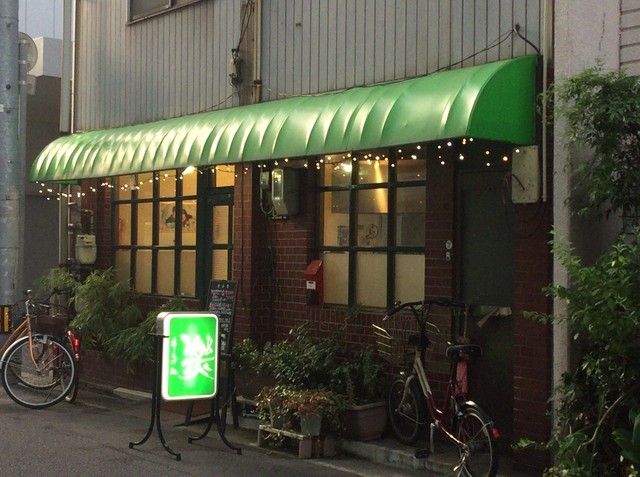 人通りの少ない小路に緑に光るスタンド看板を発見。生活圏ではあるが始めて通る道です。