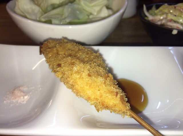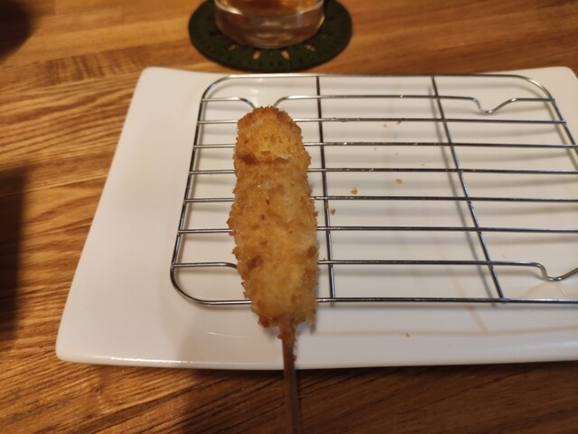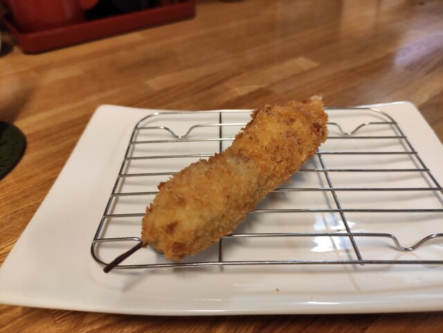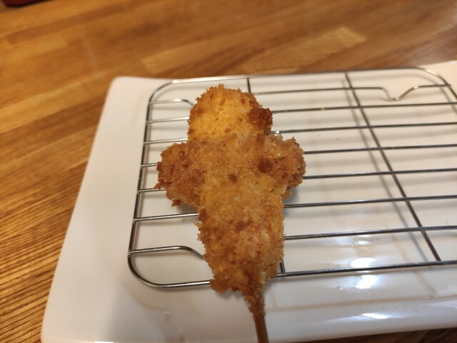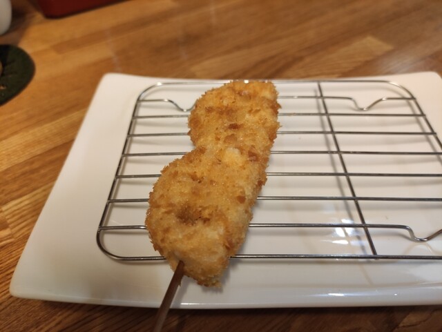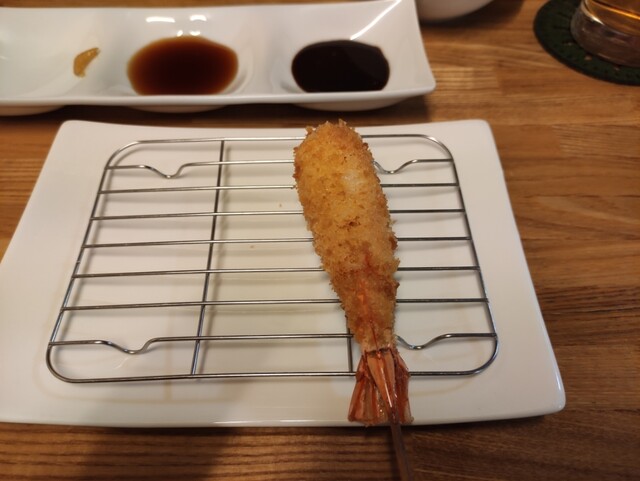 丁寧に順番に出してくださる串揚げは美味しくて大満足。クルッと丸めたキス揚げが可愛らしいです。