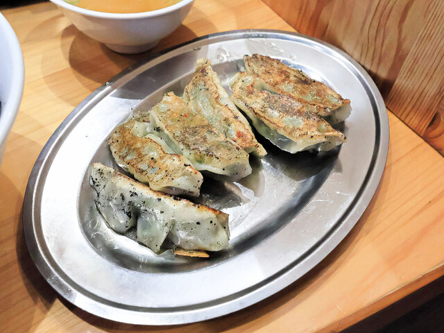 まずはかしわバターだけを食べると、ガツンと来る濃厚な味わいを感じました。その後、ご飯と一緒に食べるとさらに美味しさが引き立ちました。武内食堂のかしわバター丼よりもやや濃い味付けに感じましたが、完成度が高いと感じる美味しさでした。餃子も美味しくいただきました。焼き加減が良く、かしわバター丼の美味しいおかずになりました。鳥スープはかしわバター丼を流し込む際に役立ちました。