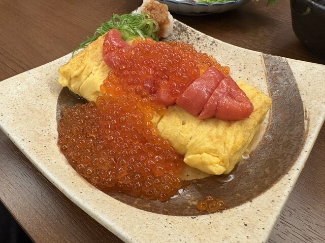 だし巻き玉子の上に明太子とイクラが乗ったこのビジュぎょらんください
