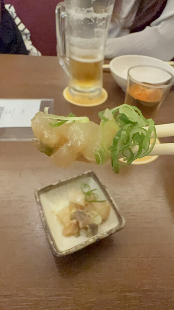 お通しは刺身の漬けぽいやつ