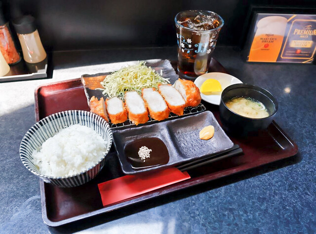 豚ロースカツ定食をいただきました。定食の内容は、ロースカツ、ご飯、味噌汁、漬物でした。