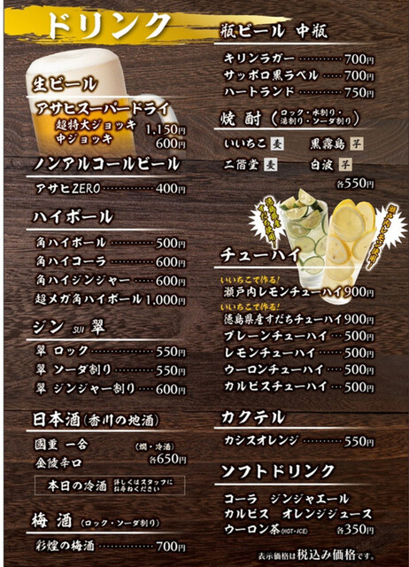 | 空間・設備 | オシャレな空間、落ち着いた空間、カウンター席あり、座敷あり、無料Wi-Fiあり |