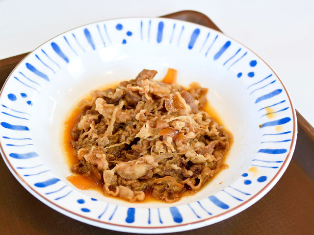 牛丼を食べながら肉が少なくなったら牛皿から肉を足す。