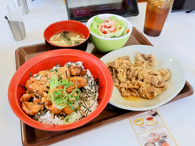 炭火やきとり丼並盛+シーザーサラダセット、牛カルビ皿並盛