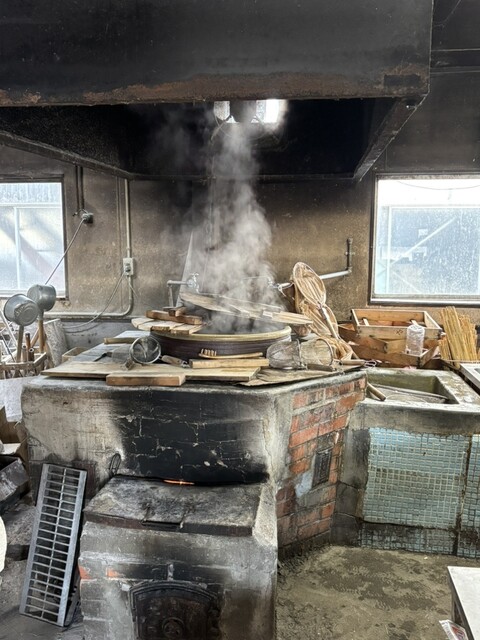 お店に入るとすぐ目に入るのが、迫力満点の大釜!