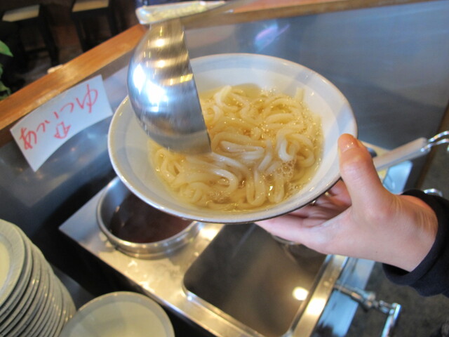 開店平成7年より変わらない100%手作りによる昔懐かしい、やや細麺ながら粘りのあるうどんです。