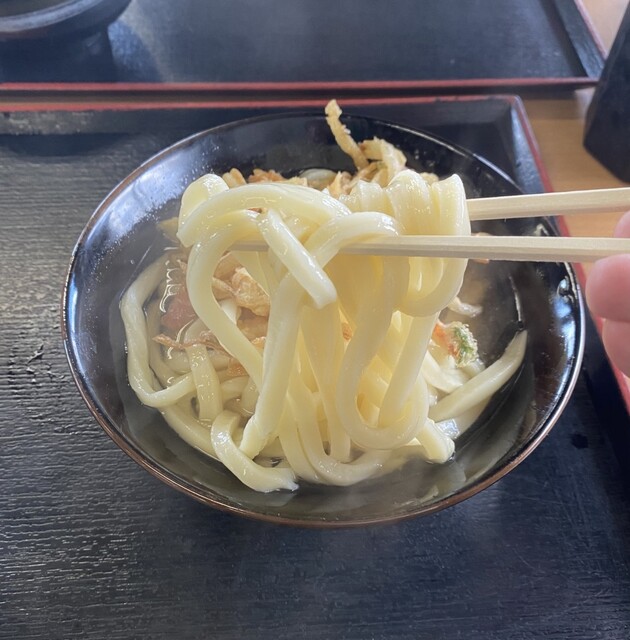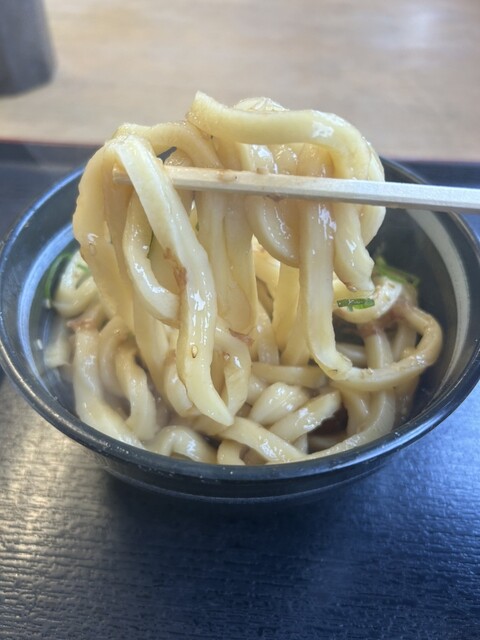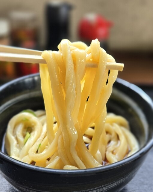 うどんはコシが非常に強く、噛んだ瞬間にしっかりとした弾力を感じるタイプ。