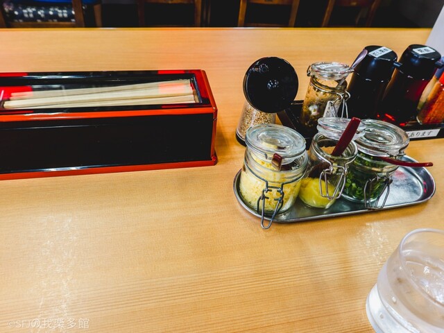 やー、『うどん屋さん基準(県内)』を抜きにしても清潔な店内。卓上調味料なんかもきれいに瓶に入っておりイイネ◎(県外の方目線だと特にグッドかな?)レイアウトとしてはテーブル中心に小上がりやカウンターなどもありまして40席ほどかな?