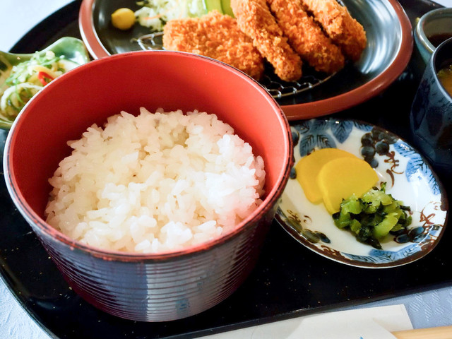二人ともオリーブメンチカツ&鶏のから揚げ定食をいただきました。