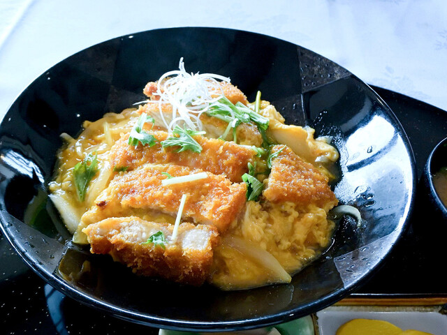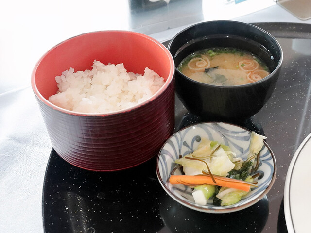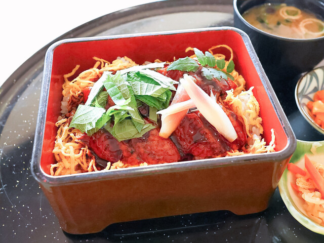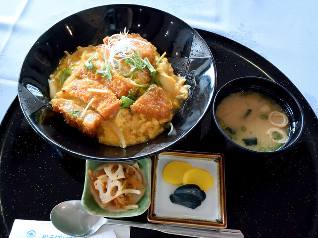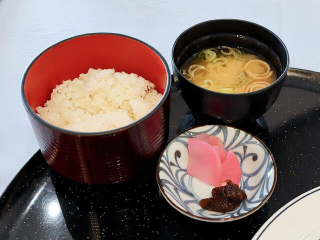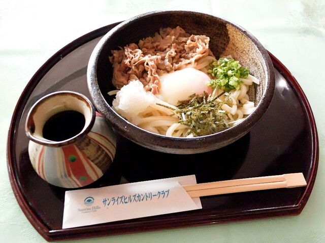 うな重をいただきました。うどん県香川県下にあるゴルフ場のレストランでは7月、8月にうな重若しくはうな丼をメニューに加えていることが多く、サンライズでもそうだったので時節柄うな重を選びました。料理の内容は、うな重、小鉢、漬物、味噌汁でした。カットされたまぁまぁな厚さの鰻で、錦糸卵を敷いたうな重でした。鰻専門店ではないので贅沢は言えません。鰻の厚みから感じる食感と、たれの甘さ加減も好みの味で、私的には満足できるうな重でした。小鉢は切り干し大根のような料理と、巻きふとわかめが具の味噌汁は普通に美味しく、2種の漬物は良い箸休めになりました。