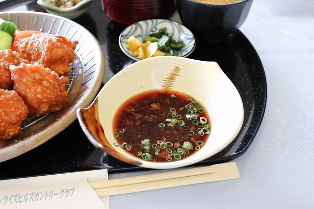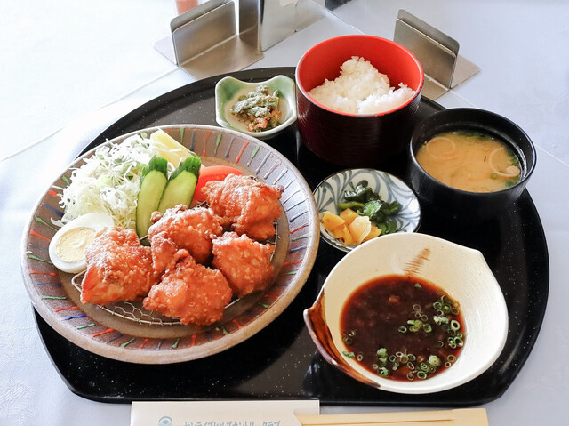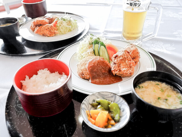 二人ともオリーブメンチカツ&鶏のから揚げ定食を選びました。今日はセルフデーということで、限られたメニューの中から一番無難そうなものを選びました。オリーブメンチカツもから揚げも美味しく、生ビールがすすみました。野菜の量もちょうど良く、相方と二人で生ビールを呑みながらゴルフランチを楽しむことができました。