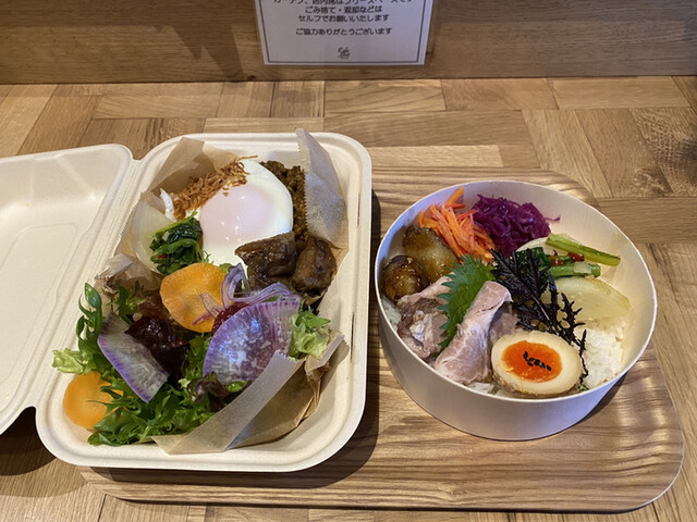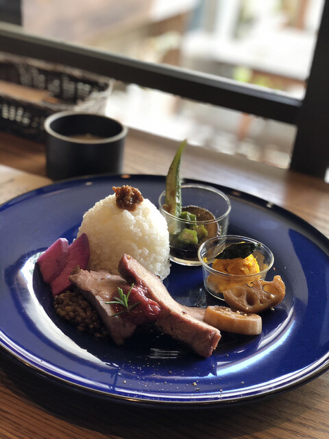 なかなかにオシャレなカフェです。 中庭?みたいなところ、入口の窓、すごく好きな感じ。 今はテイクアウトにもイートインにもできるお弁当ランチになっていました。 敷地内にオシャレ... 詳細を見る