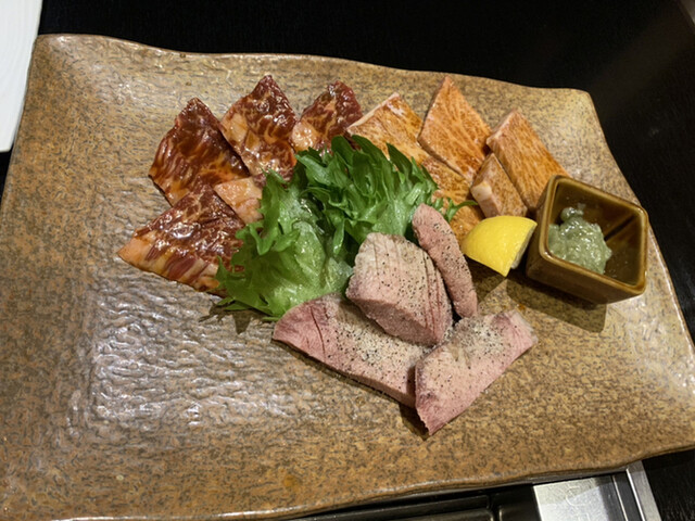 厚切り特上タン 上ハラミ 2 アバラ 2 肉厚テッチャン 白菜キムチ 和風サラダ ライス大 トマトサワー ウーロン茶 安定のメニュー 2人で6,000円弱 ... 詳細を見る