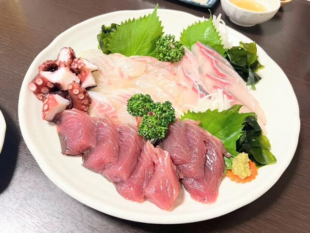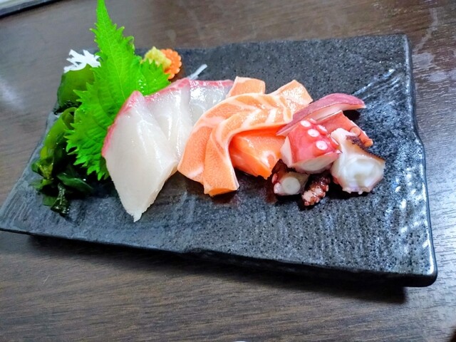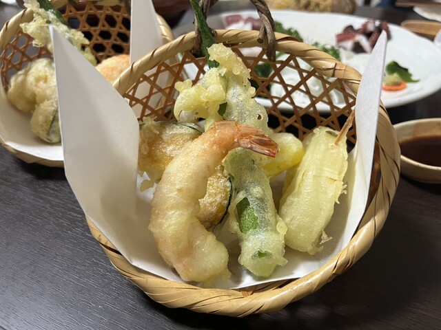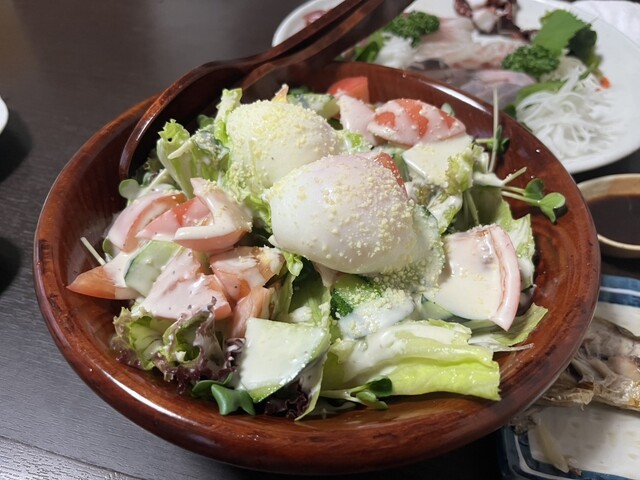 刺身盛合せ、天ぷら、サラダが