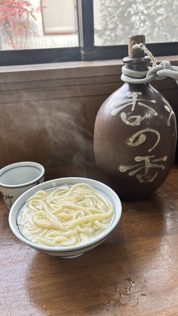 香川の釜揚げうどんといえばここと勧められ訪問。朝10時にはすでに長蛇の列で、人気の高さが伺えた。45分ほどで入店し15分ほど提供待ち。釜揚げなので、ロットで管理している様子。温かい麺を注文したが、炒り...