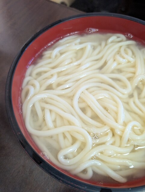 釜揚げうどん一択ですが、たらいの小(4.5玉)で頂きました。席に座ったあと...