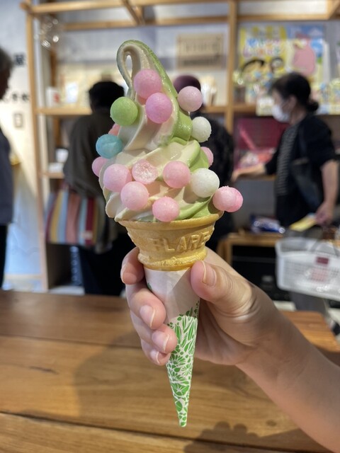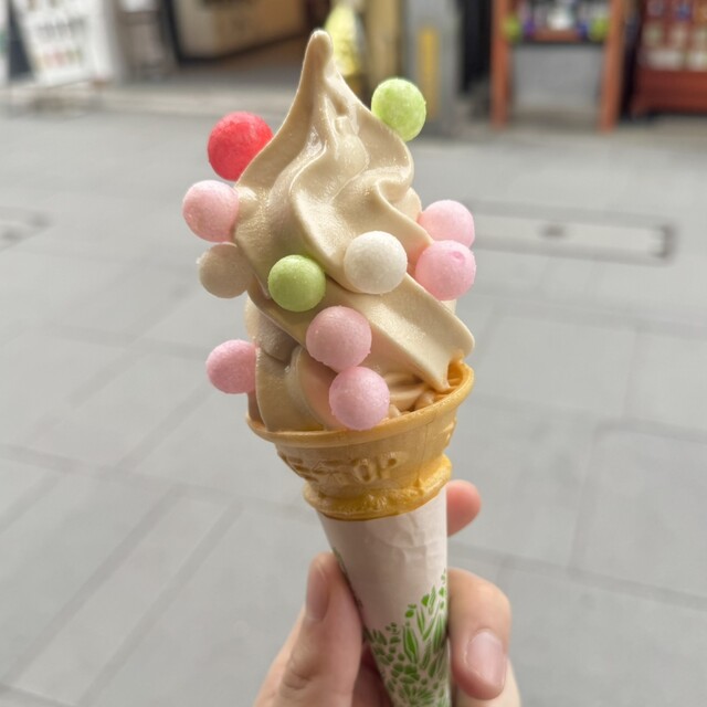 御本宮まで行った帰りに甘いものを食べようと訪問。美味しいおいりが散りばめられたソフト。カラフルで目にも鮮やか、疲れた体に沁みる甘味。座って食べれるスペースもありしっかり堪能できました。