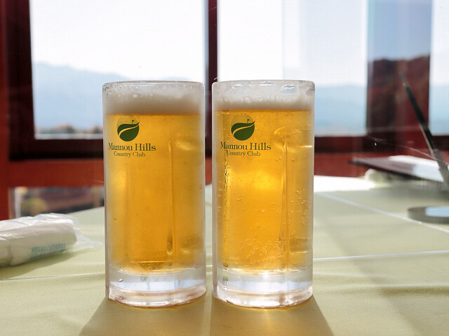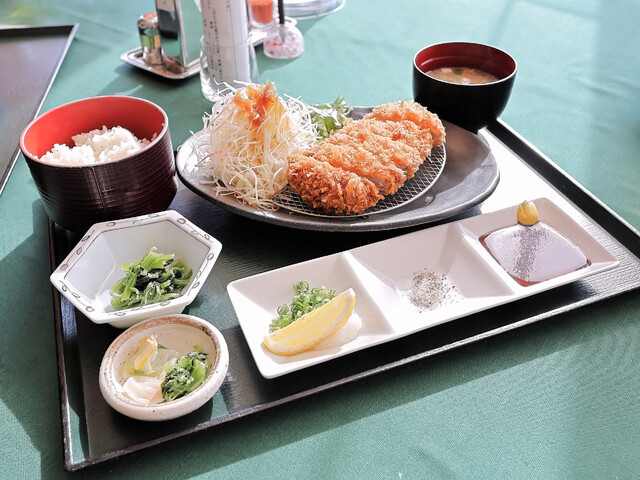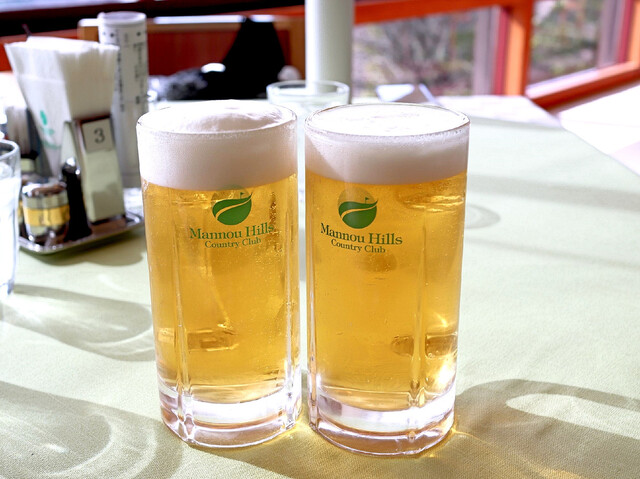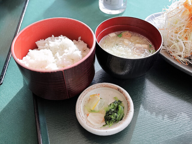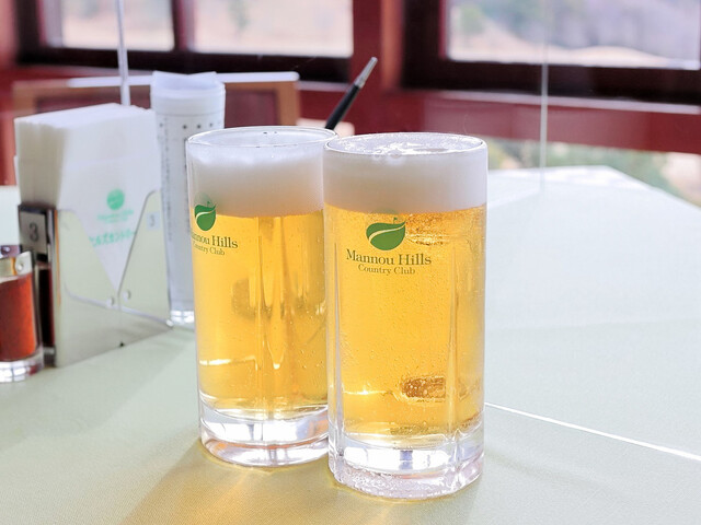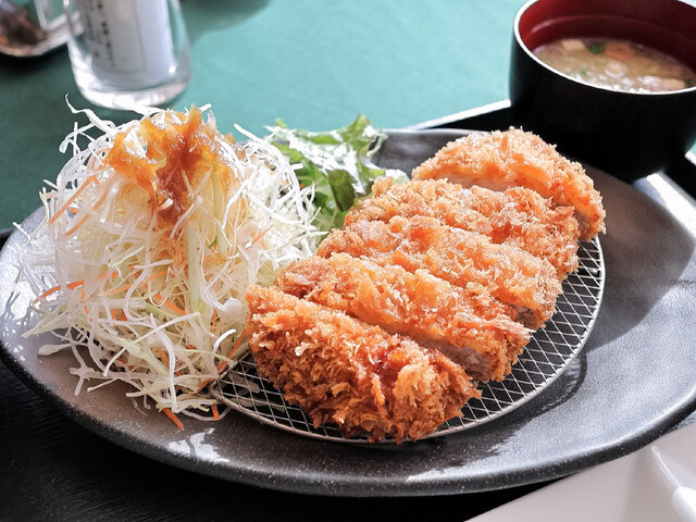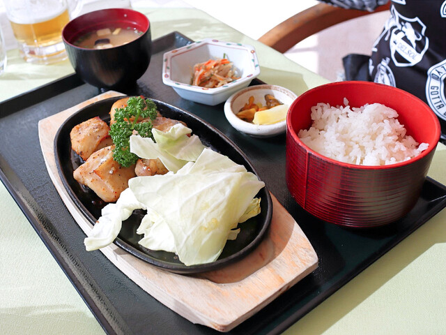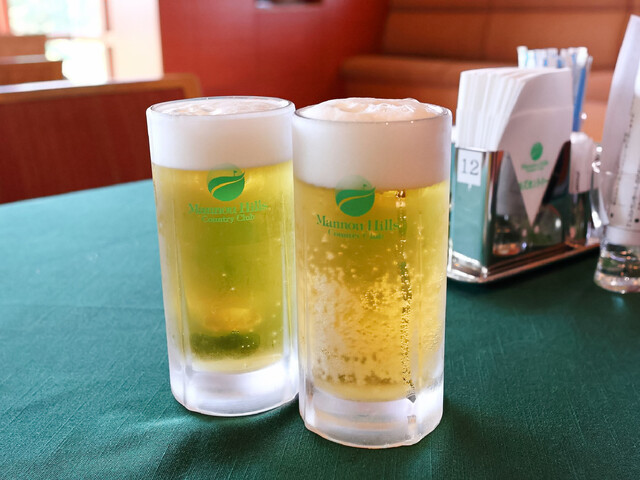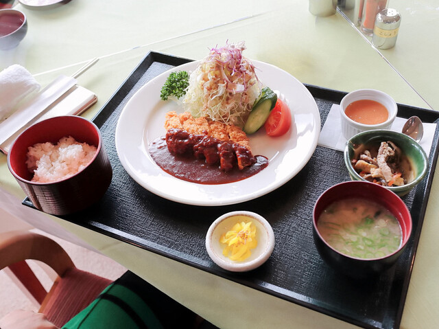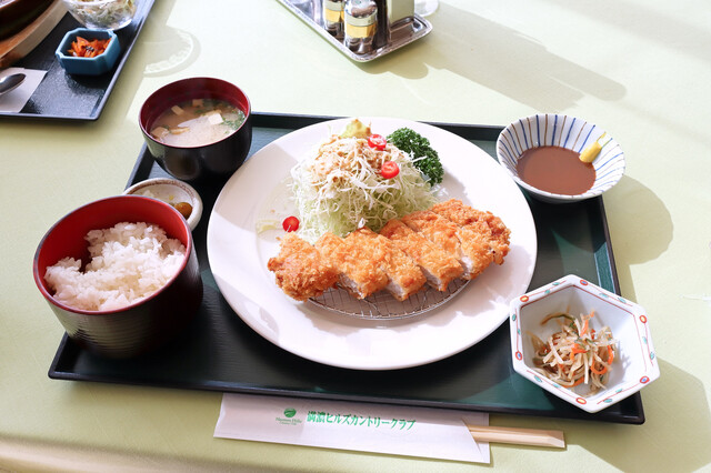 先ずは生ビールで乾杯しました。相方は若鶏のガーリック焼きを注文しました。確か…以前にその料理を食べて残念系に思ったことを想い出して相方に伝えました。しかし相方は「食べてみる」と言い食べました。その結果、相方は何でもっと強く止めなかったのかと私に言いました。私は豚カツ定食を食べました。ゴルフ場のレストランで提供されるとんかつは、地方のブランド豚、黒豚などを使用していることが多々ありレストランの品格を表す料理の一つだと思います。しかし、外食産業madeの冷凍食品のとんかつをゴルフ場料金で出すレストランがあるので驚くことがあります。フライ衣のつき加減を見て少し疑問を抱きながらも、厚みのあるとんかつで普通に美味しく食べれました。とは言え、自分が注文した料理が空振りに終わった相方が半分食べてしまいました。小鉢は和え物で、ご飯は少しだけ食べました。豆腐とお揚げが具の味噌汁は出汁の味が美味しかったです。