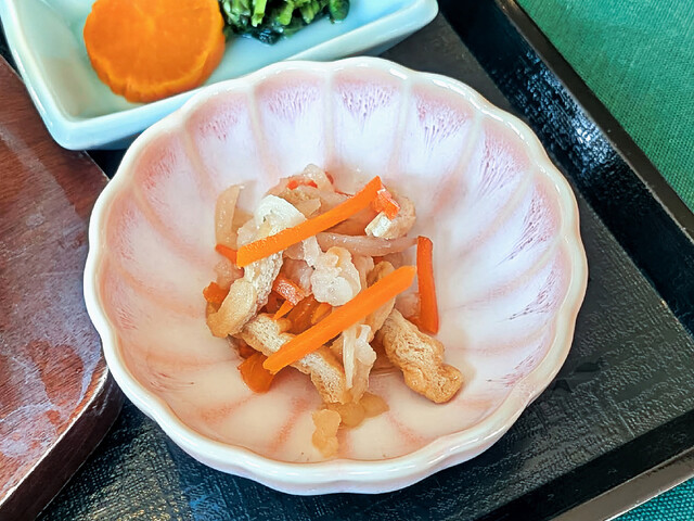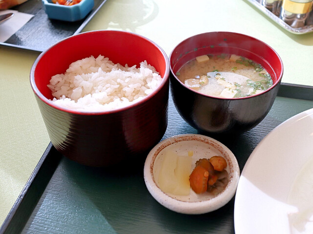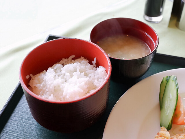 相方はチキンカツを選び、私は豚ロースカツを選びました。相方はチキンカツが好物の一つでたまに食べています。特に何も言っていませんでしたが、完食をしていたので美味しかったのだと思います。豚ロースカツは程好い厚みがあり美味しくいただきました。カツをソースにつけて食べるとご飯がすすむ君になりかけたので我慢しました、小鉢も味噌汁も美味しかったです。